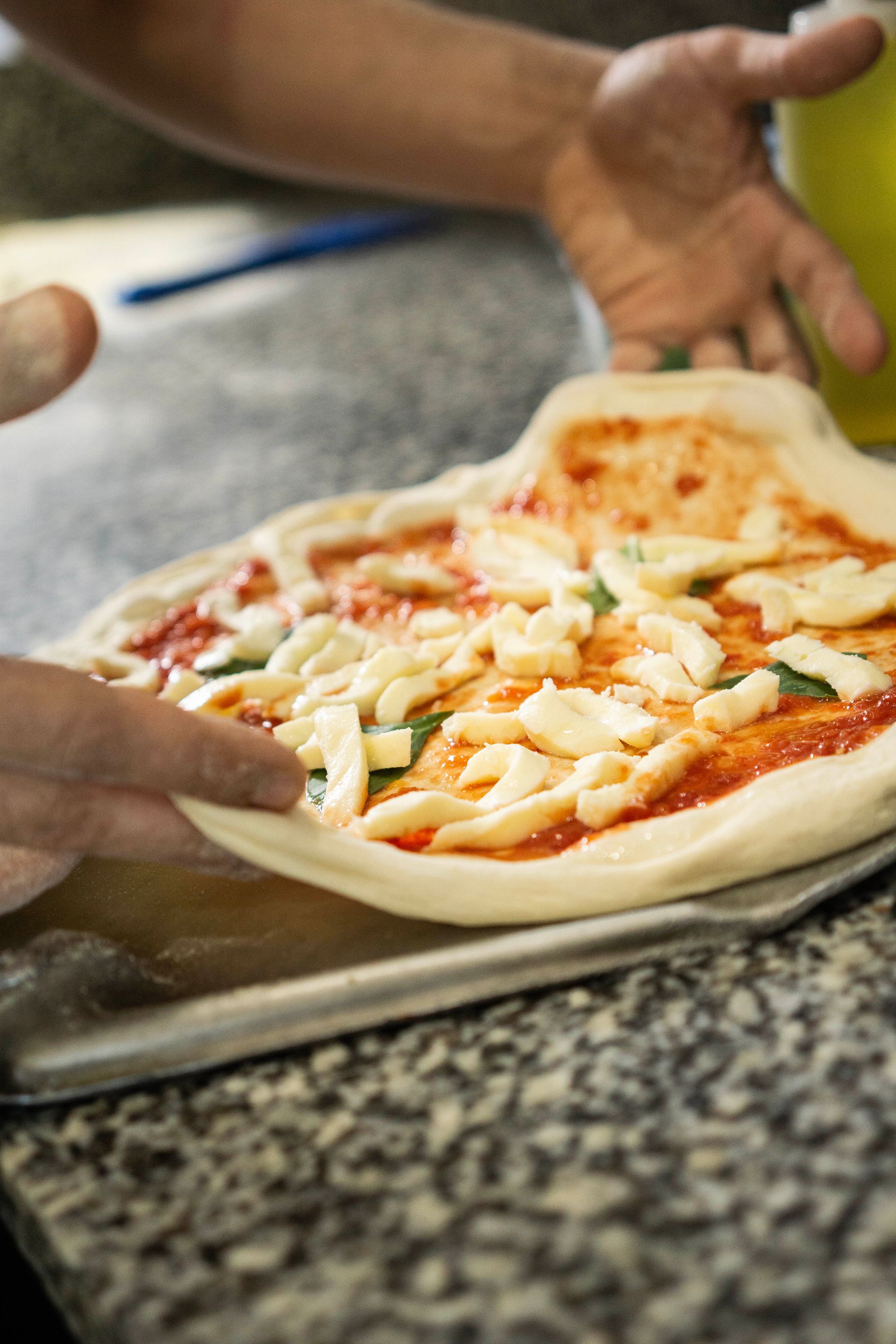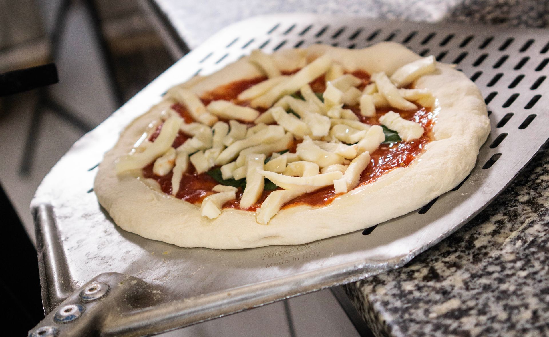 Fior di latte, pecorino romano DOP, pepe, basilico, olio EVO