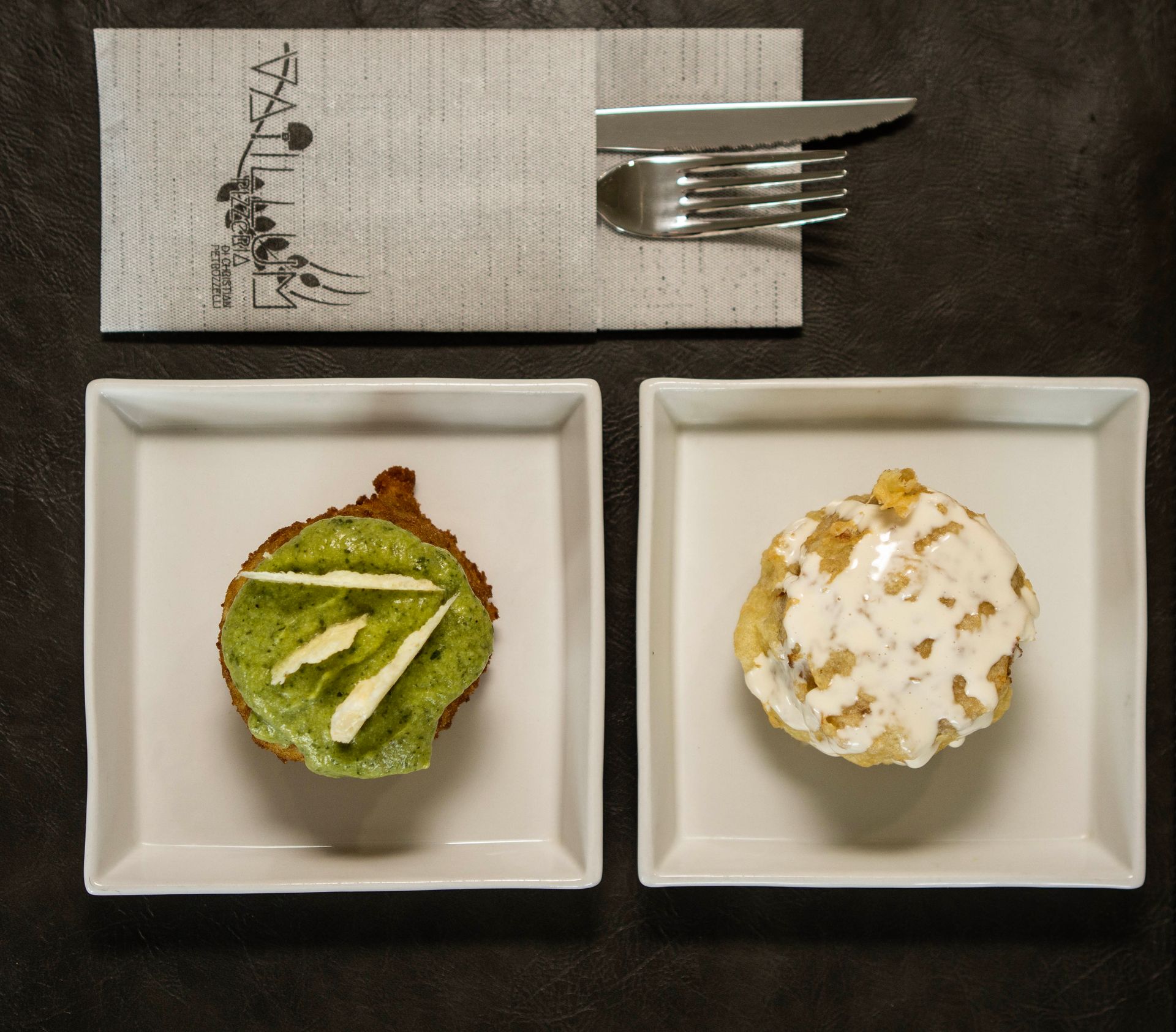 Fior di latte, crema di zucca, porchetta d'Ariccia IGP, blu di bufala, patate al forno, fonduta di parmigiano, olio EVO